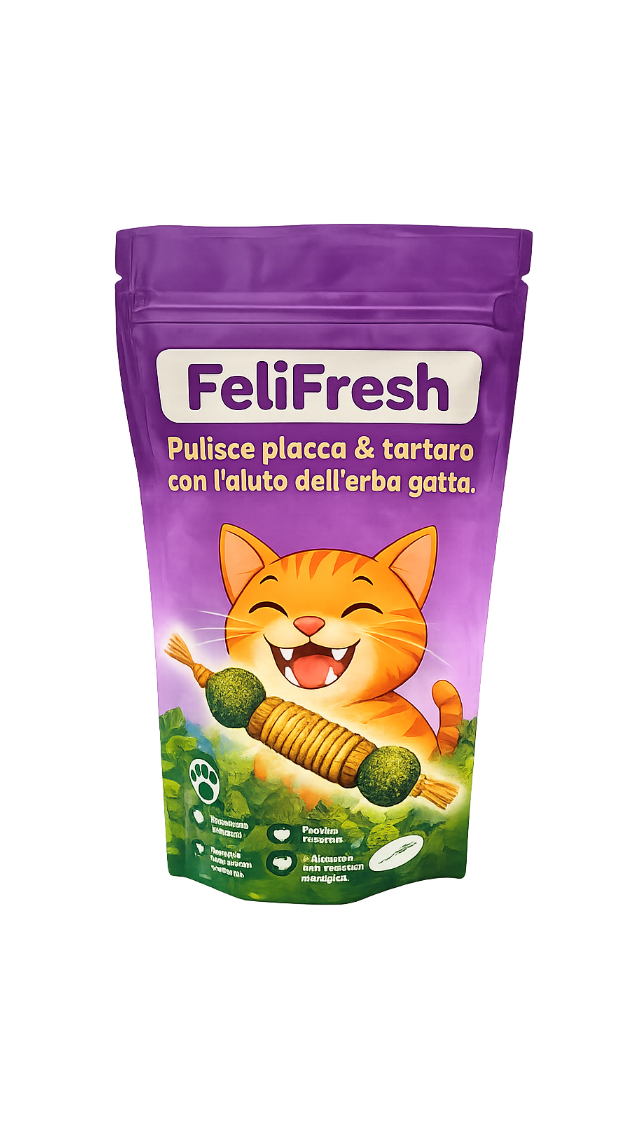 Come veterinario, consiglio FeliFresh™ perché aiuta a mantenere l’igiene orale del gatto in modo naturale e senza stress. È una valida alternativa allo spazzolino tradizionale, spesso mal tollerato, ed è realizzato con materiali sicuri per l’uso quotidiano.
